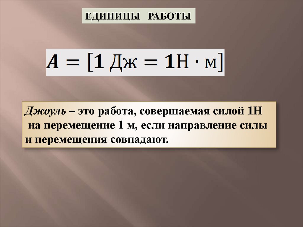 ЕДИНИЦЫ РАБОТЫДжоуль – это работа, совершаемая силой 1Н