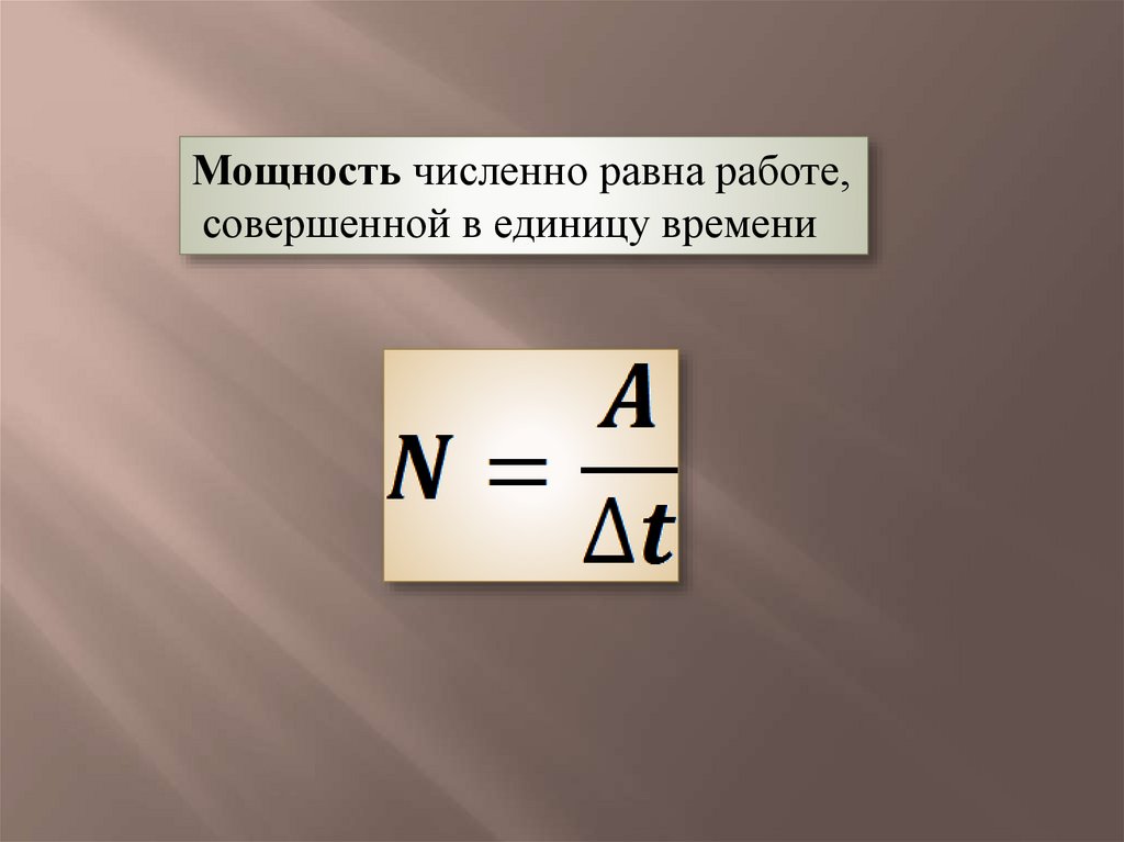 Мощность численно равна работе,совершенной в единицу времени