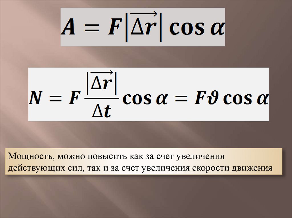 Мощность, можно повысить как за счет увеличениядействующих сил, так и за счет увеличения скорости движения