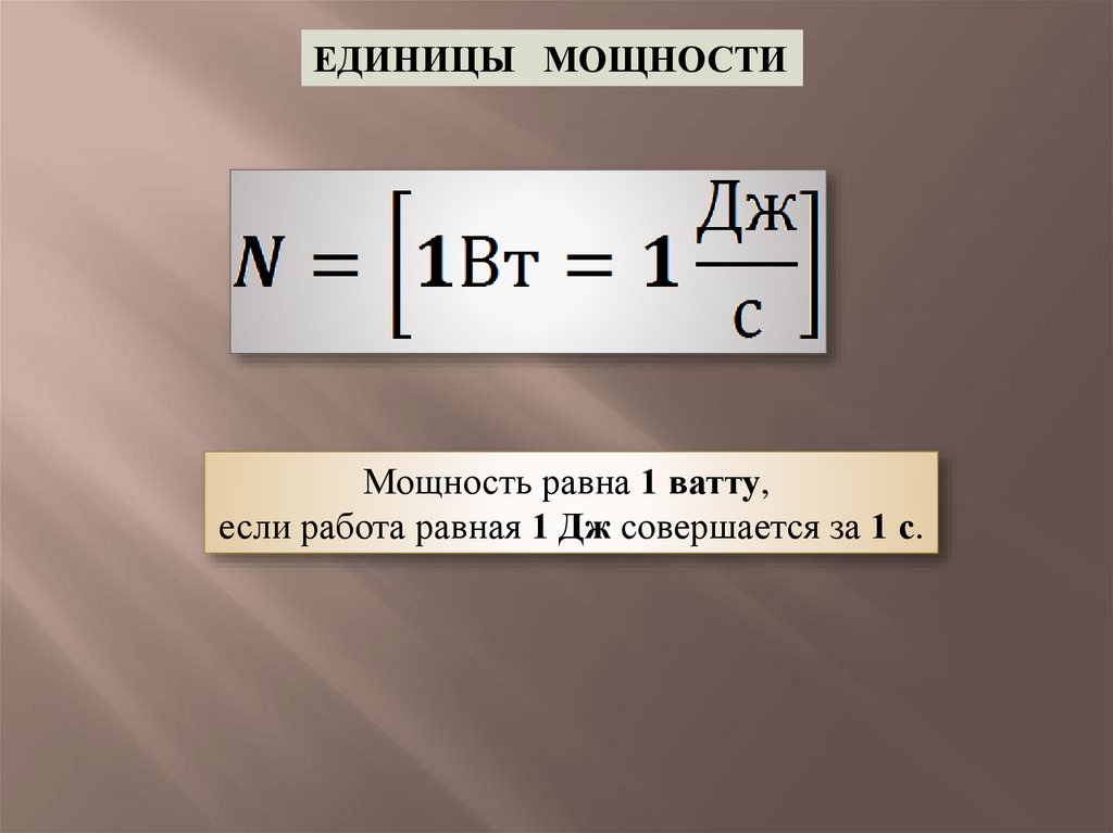 ЕДИНИЦЫ МОЩНОСТИМощность равна 1 ватту,