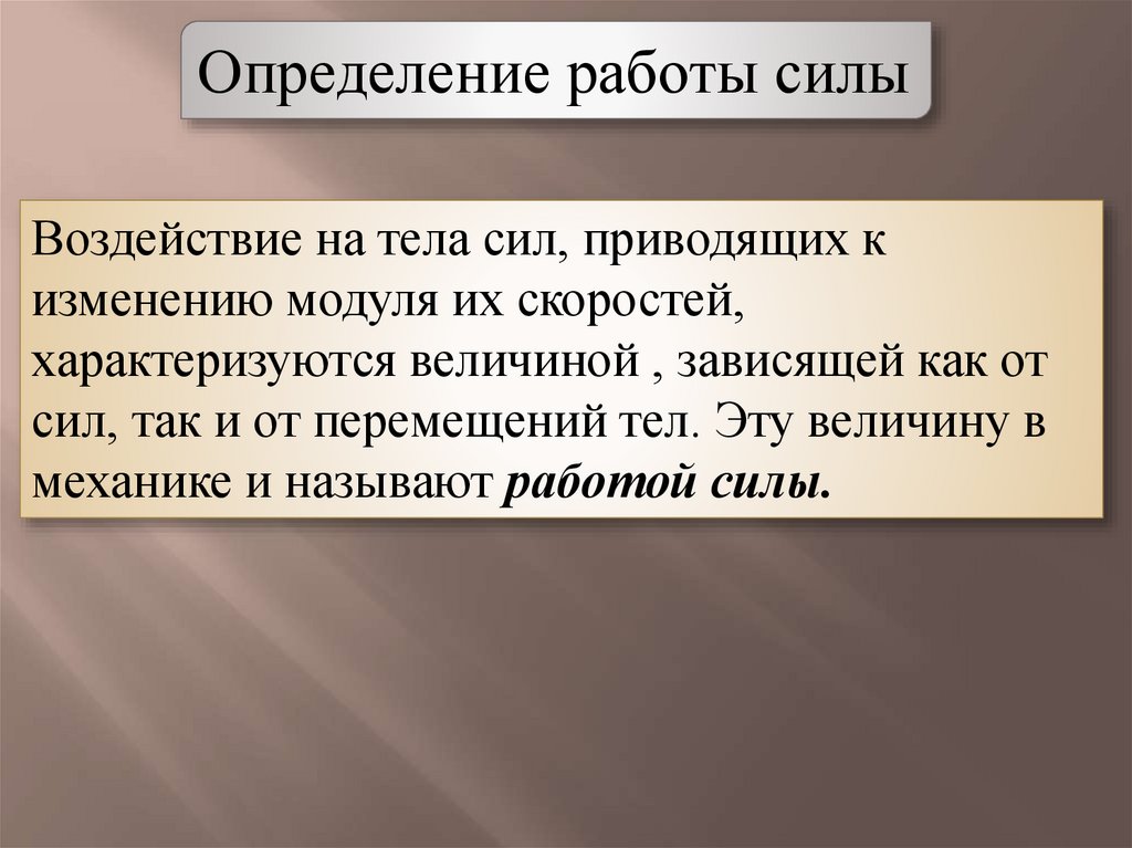 Определение работы силыВоздействие на тела сил, приводящих к