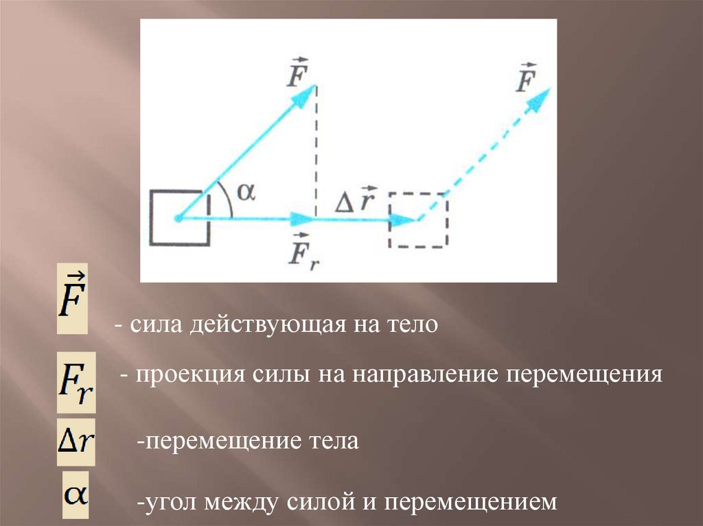 - сила действующая на тело- проекция силы на направление перемещения