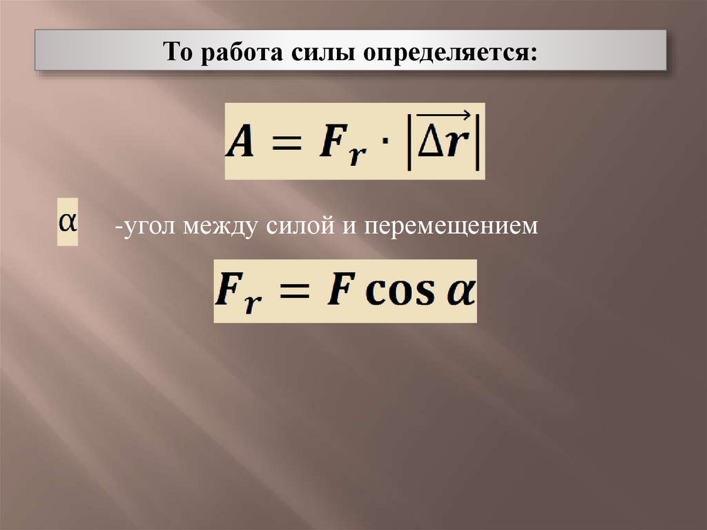 То работа силы определяется:-угол между силой и перемещением
