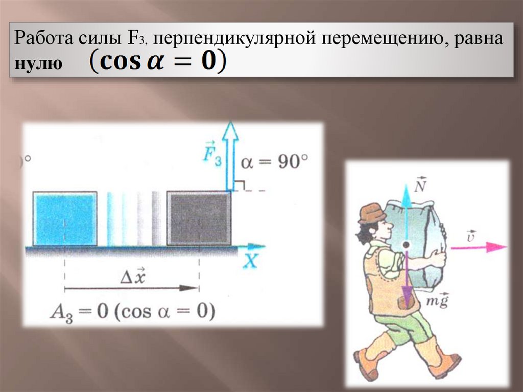 Работа силы F3, перпендикулярной перемещению, равнанулю