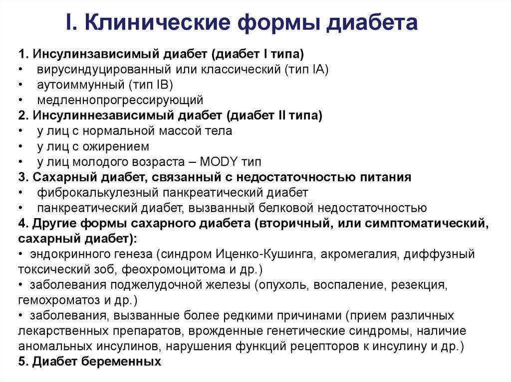I. Клинические формы диабета1. Инсулинзависимый диабет (диабет I типа)