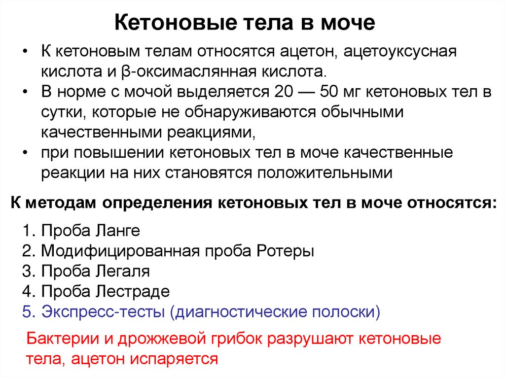 кетоновыми телами, нитроферрицианидом натрия и диамином, в результате