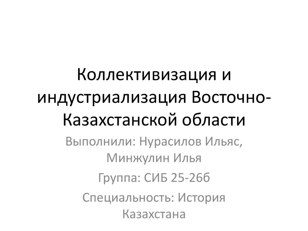 Коллективизация ииндустриализация ВосточноКазахстанской области