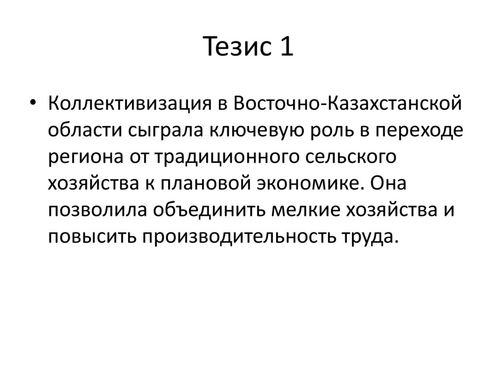 Тезис 1• Коллективизация в Восточно-Казахстанской