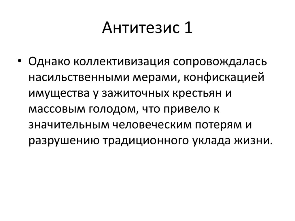 Антитезис 1• Однако коллективизация сопровождалась