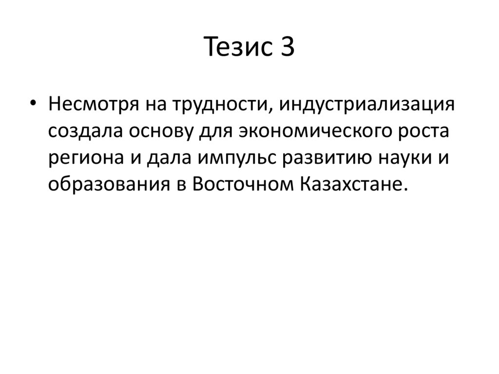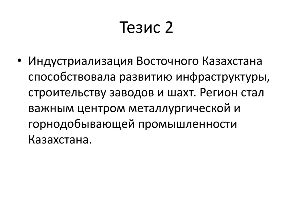 Тезис 2• Индустриализация Восточного Казахстана