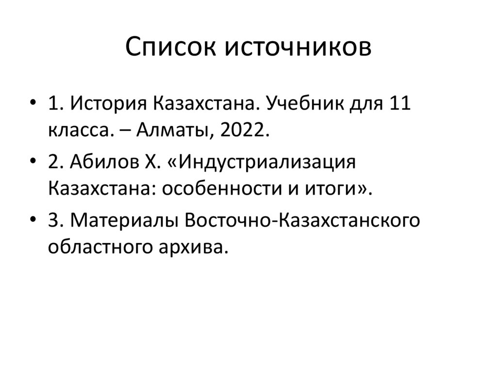 Список источников• 1. История Казахстана. Учебник для 11