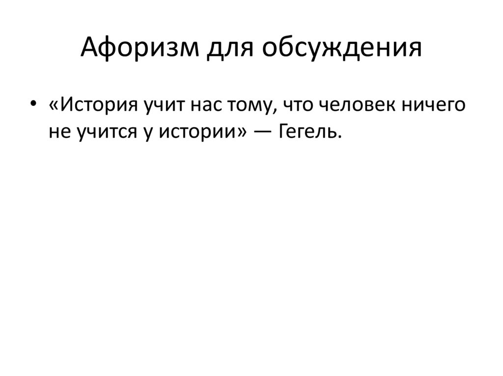 Афоризм для обсуждения• «История учит нас тому, что человек ничего