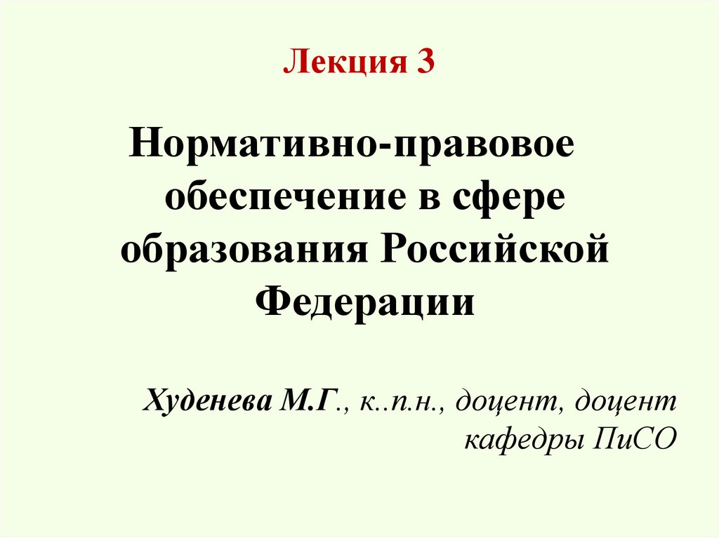 Лекция 3. Нормативно-правовое обеспечение в сфере образования Российской Федерации (2)