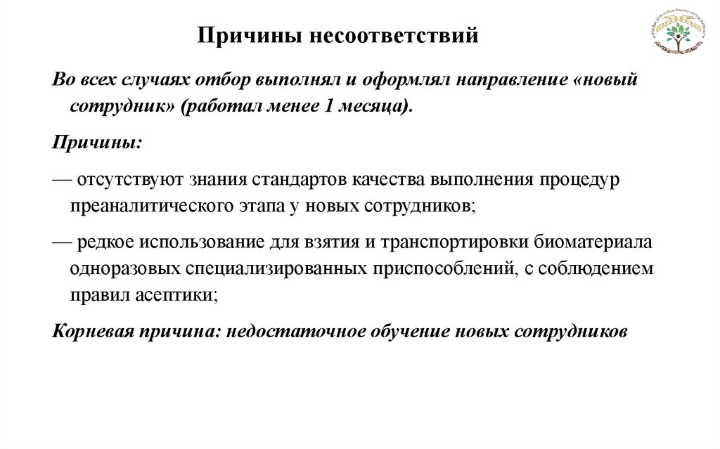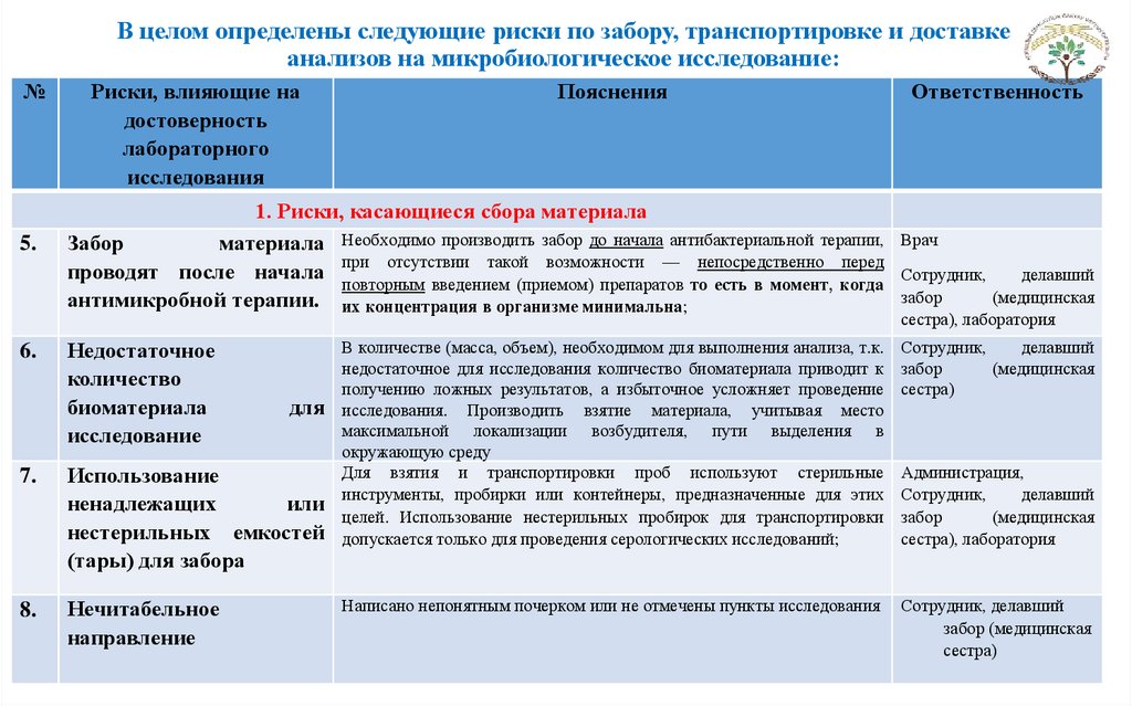 биоматериала, их правильная и своевременная доставка в лабораторию), могут