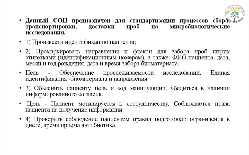 2. Улучшить качество забора, хранения и доставки биоматериала
