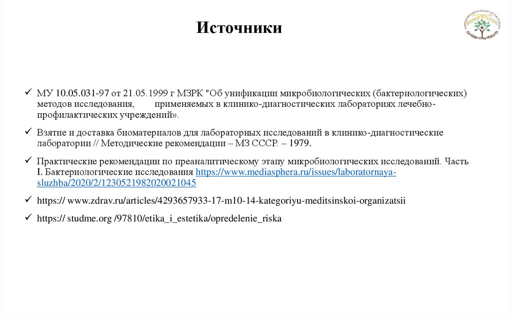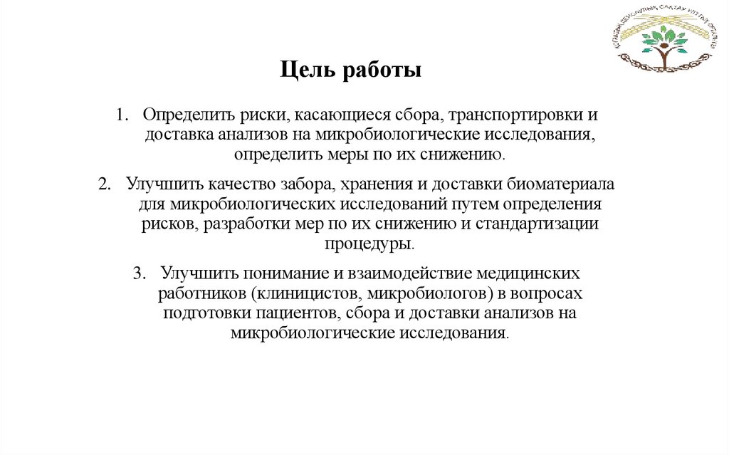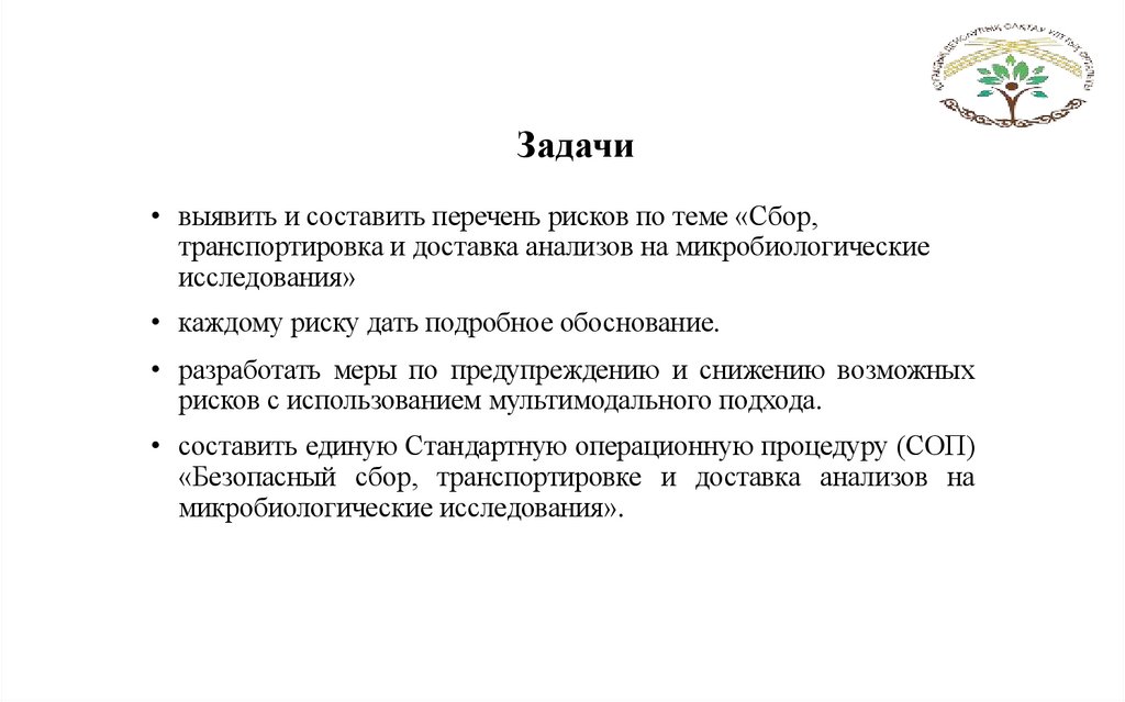 • выявить и составить перечень рисков по теме «Сбор,транспортировка и доставка анализов на микробиологические