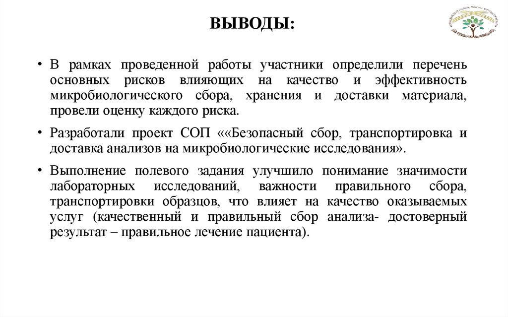 • Разработали проект СОП ««Безопасный сбор, транспортировка и