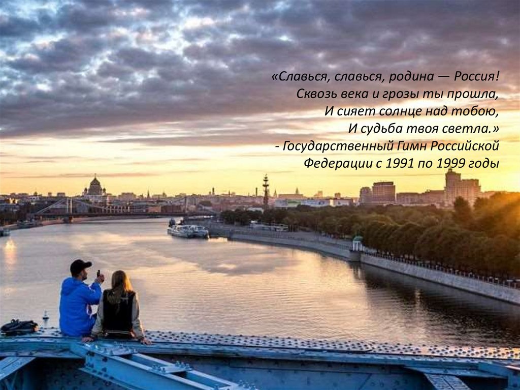 «Славься, славься, родина — Россия!Сквозь века и грозы ты прошла,