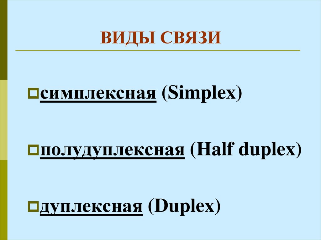 симплексная (Simplex)полудуплексная (Half duplex)