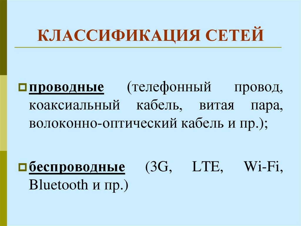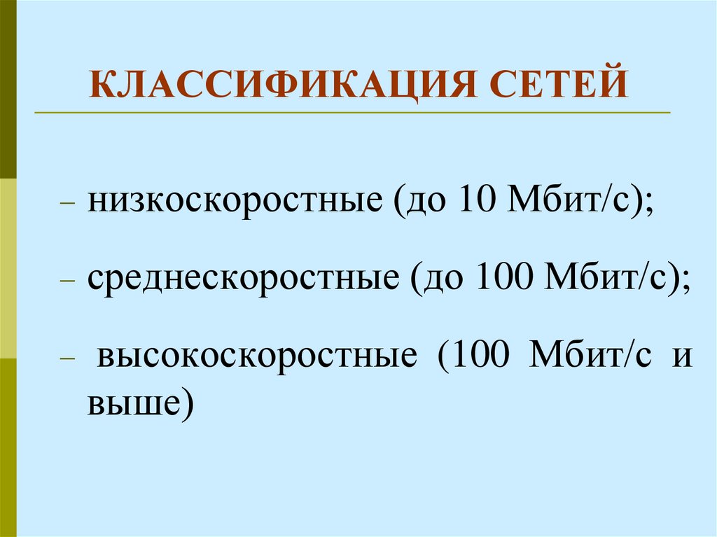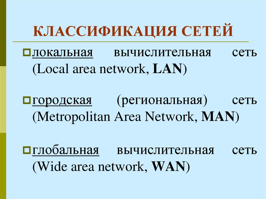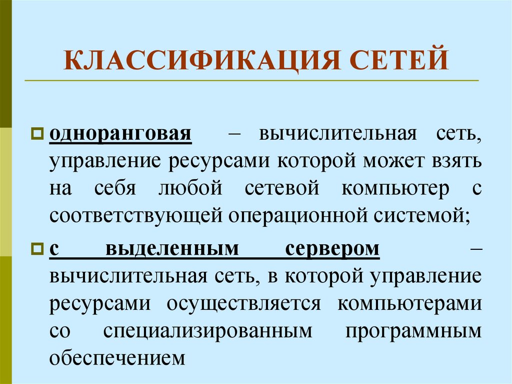 Классификация компьютерных сетей. Виды сетевых