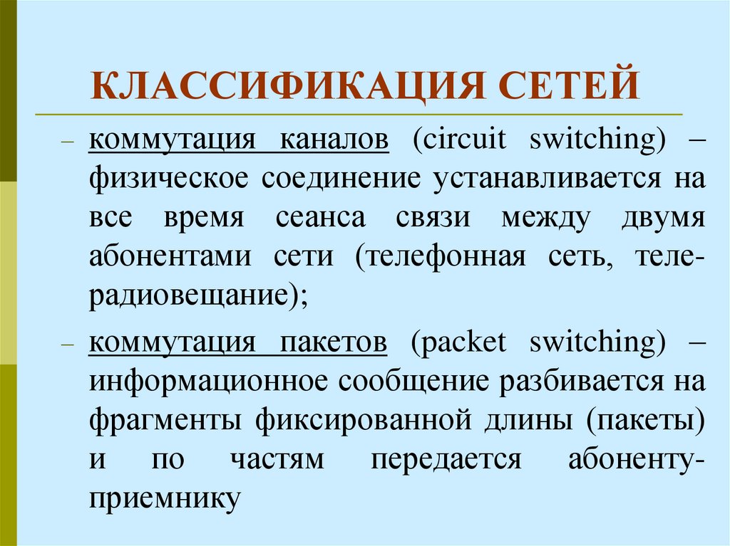 12. КЛАССИФИКАЦИЯ СЕТЕЙ