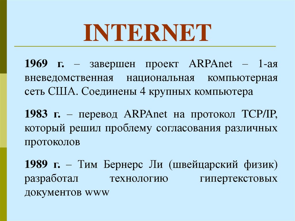 Глобальная сеть интернет. Электронная почта: