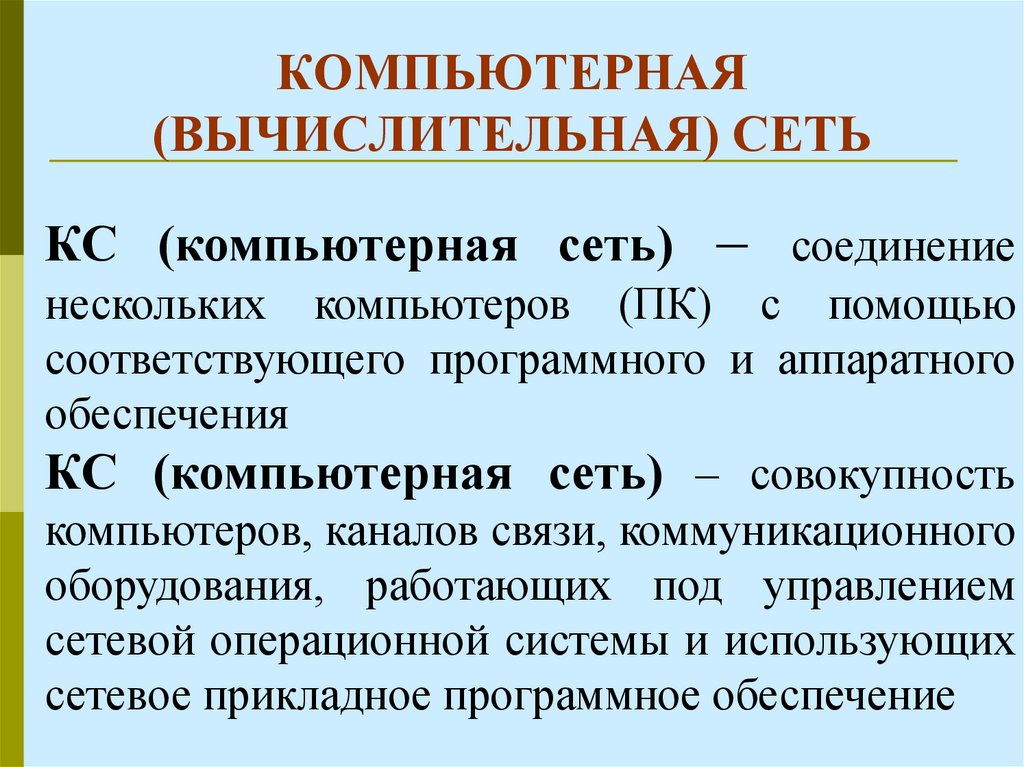 КС (компьютерная сеть) – совокупность