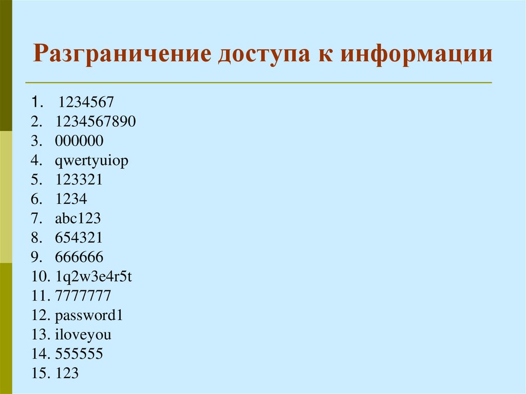 1.Пароль – то, что мы знаем (слово, PIN-код, код для замка и