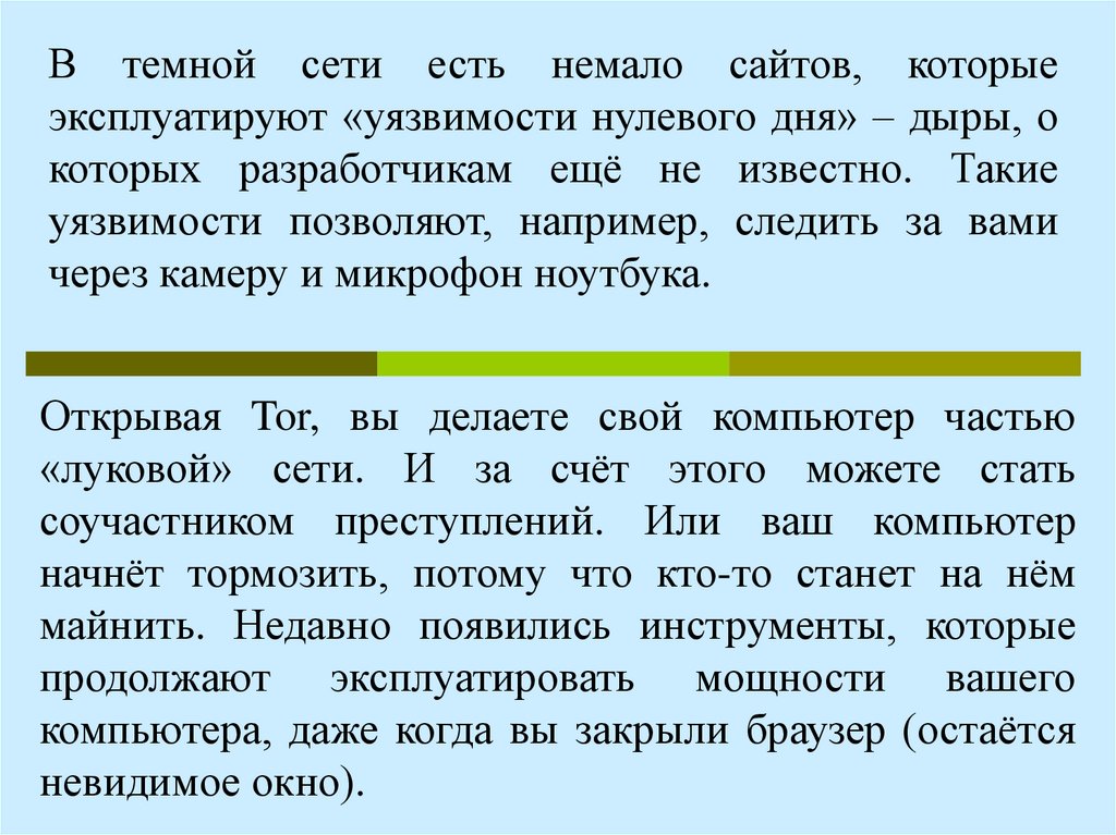 В темной сети есть немало сайтов, которыеэксплуатируют «уязвимости нулевого дня» – дыры, о