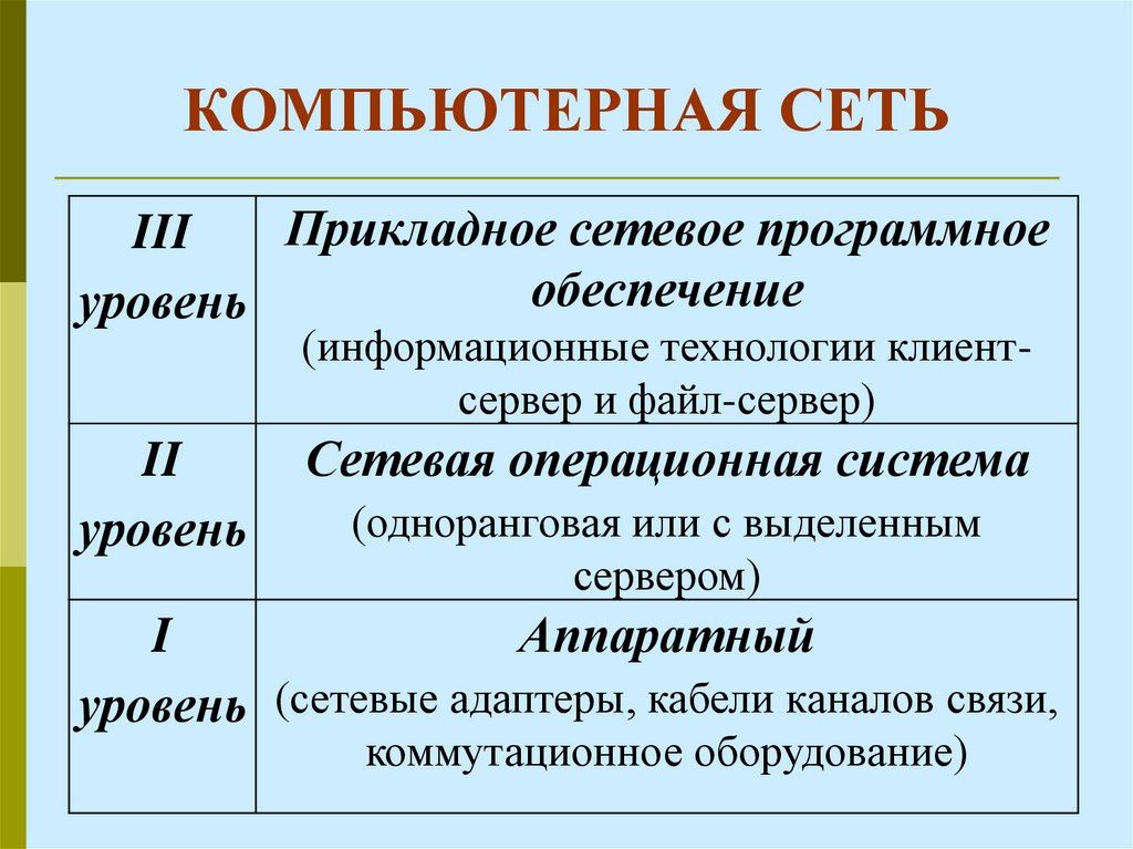 уровень (сетевые адаптеры, кабели каналов связи,