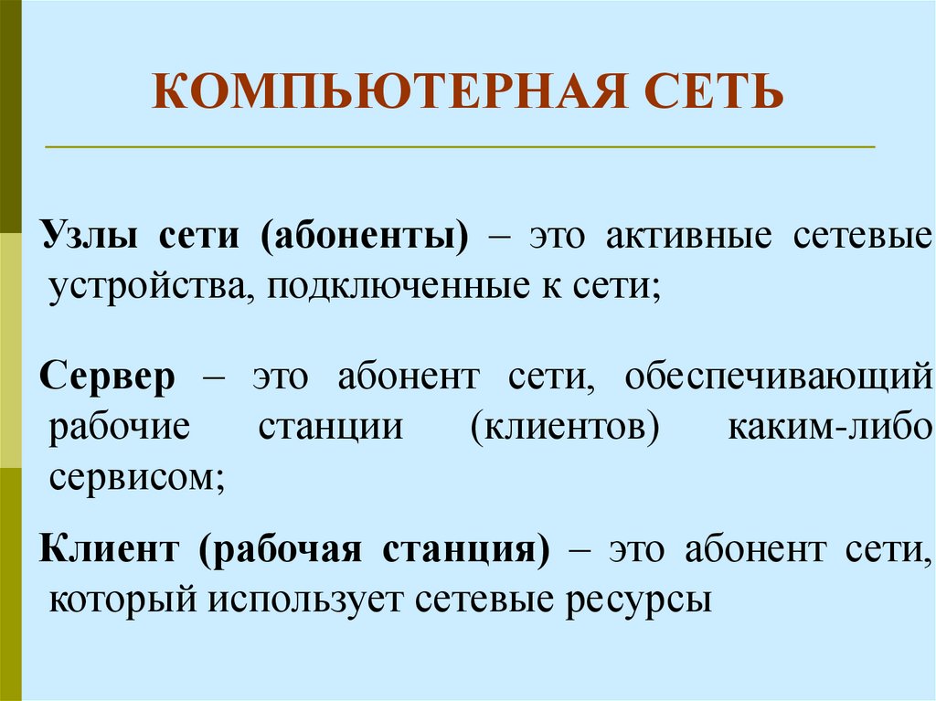 Клиент (рабочая станция) – это абонент сети,