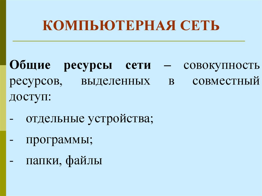 Общие ресурсы сети – совокупностьресурсов, выделенных в совместный