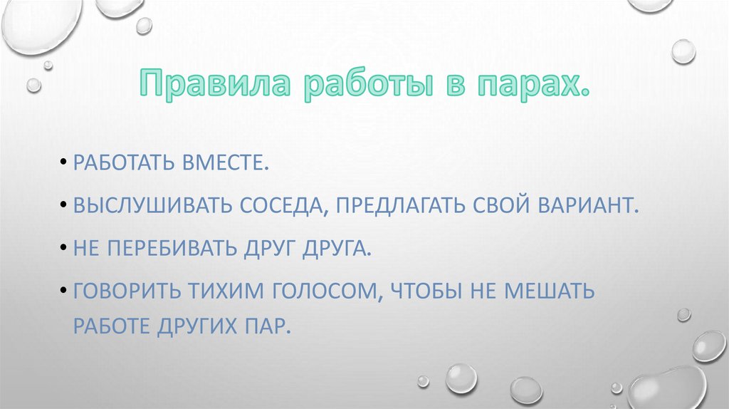 • РАБОТАТЬ ВМЕСТЕ.• ВЫСЛУШИВАТЬ СОСЕДА, ПРЕДЛАГАТЬ СВОЙ ВАРИАНТ.