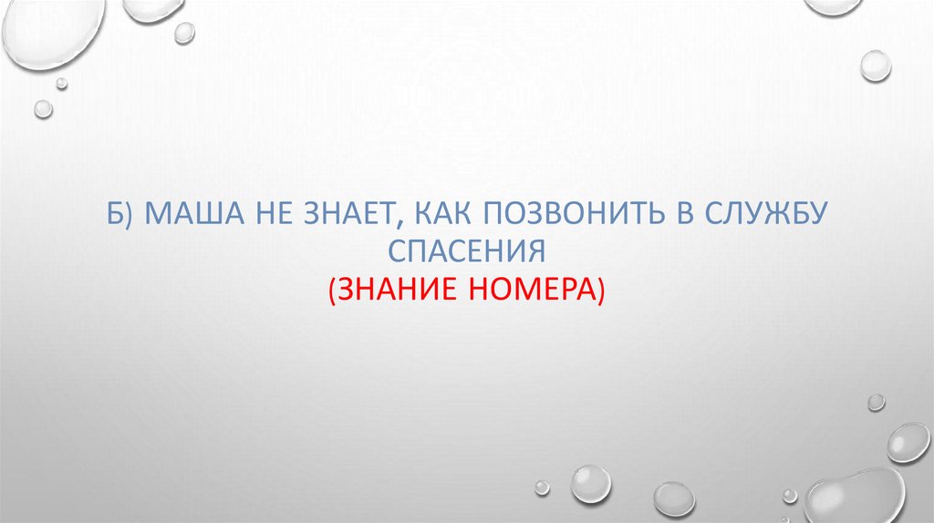 Б) МАША НЕ ЗНАЕТ, КАК ПОЗВОНИТЬ В СЛУЖБУСПАСЕНИЯ