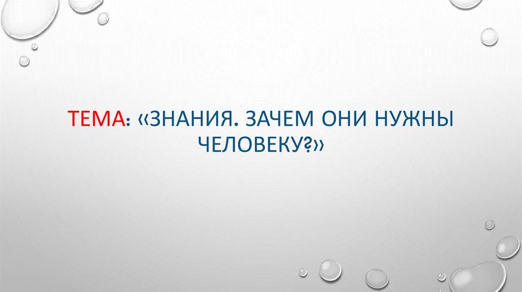 ТЕМА: «ЗНАНИЯ. ЗАЧЕМ ОНИ НУЖНЫЧЕЛОВЕКУ?»