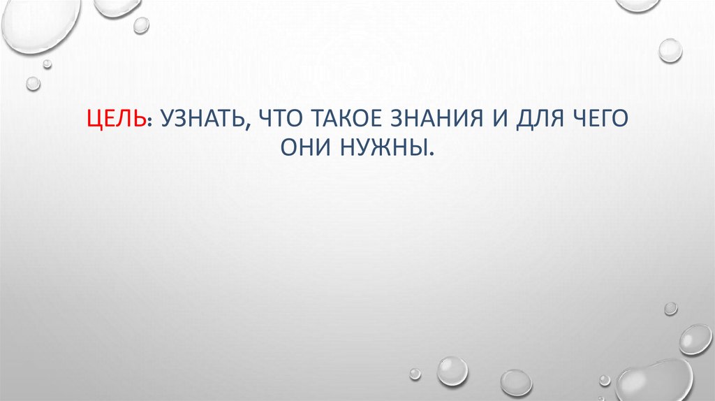 ЦЕЛЬ: УЗНАТЬ, ЧТО ТАКОЕ ЗНАНИЯ И ДЛЯ ЧЕГООНИ НУЖНЫ.