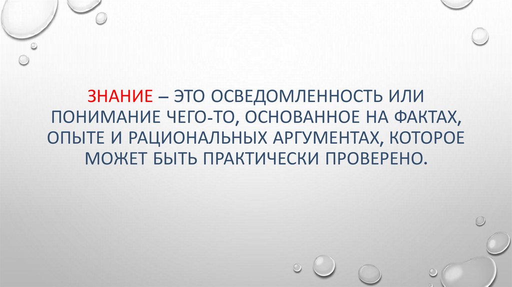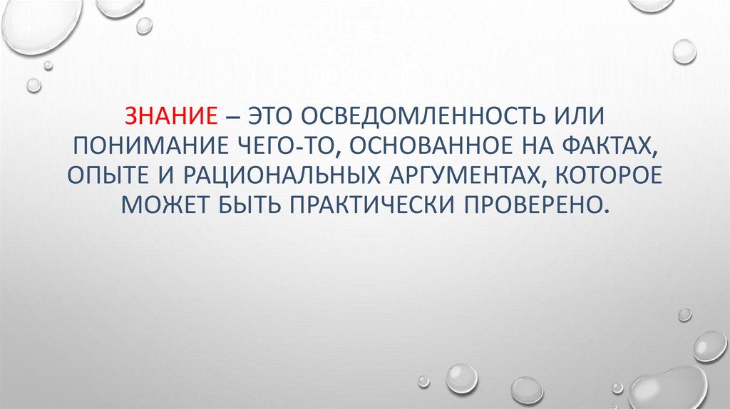 ЗНАНИЕ – ЭТО ОСВЕДОМЛЕННОСТЬ ИЛИПОНИМАНИЕ ЧЕГО-ТО, ОСНОВАННОЕ НА ФАКТАХ,