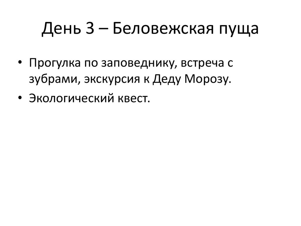 День 3 – Беловежская пуща• Прогулка по заповеднику, встреча с