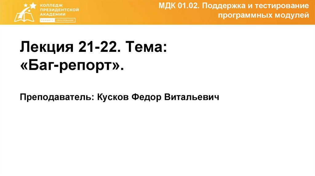МДК 01.02. Поддержка и тестированиепрограммных модулей