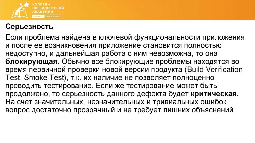 СерьезностьЕсли проблема найдена в ключевой функциональности приложения