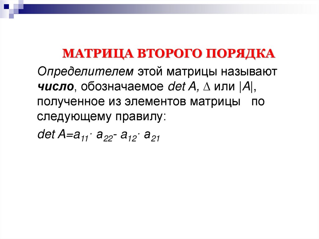 МАТРИЦА ВТОРОГО ПОРЯДКАОпределителем этой матрицы называют