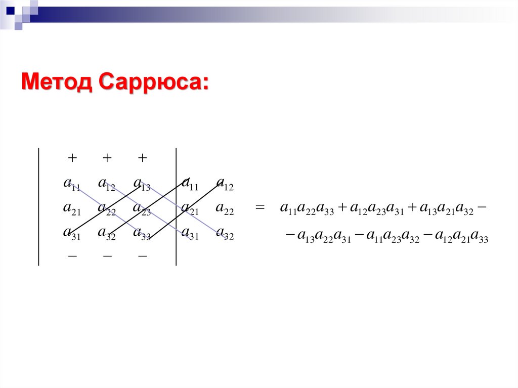 Определителем матрицы третьего порядка называютчисло, которое находят с помощью формулы (МЕТОД