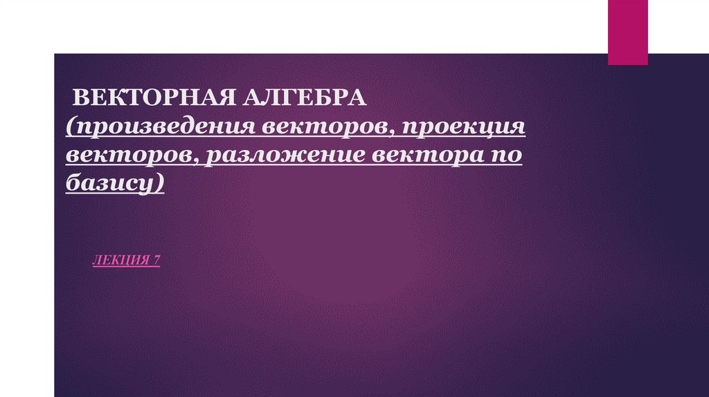 ВЕКТОРНАЯ АЛГЕБРА(произведения векторов, проекция