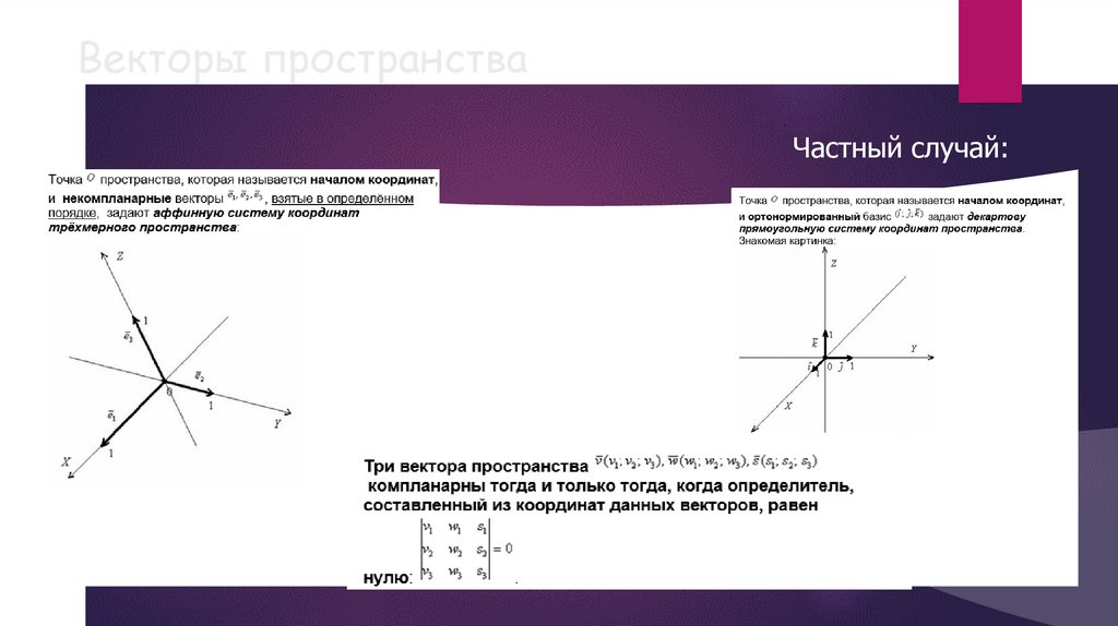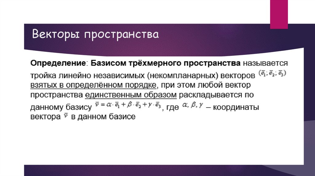 неколлинеарных векторов. В пространстве базис состоит из трех