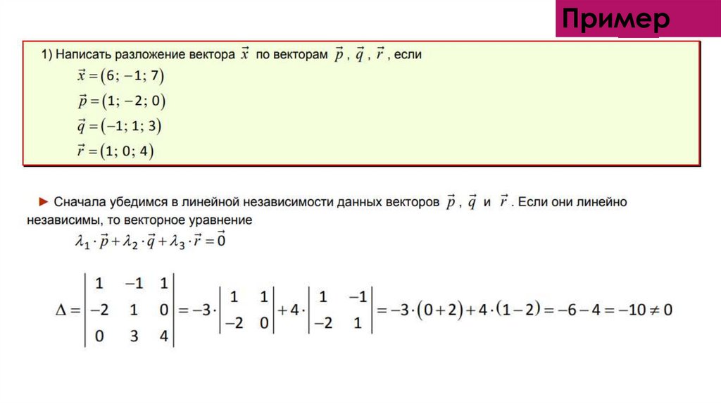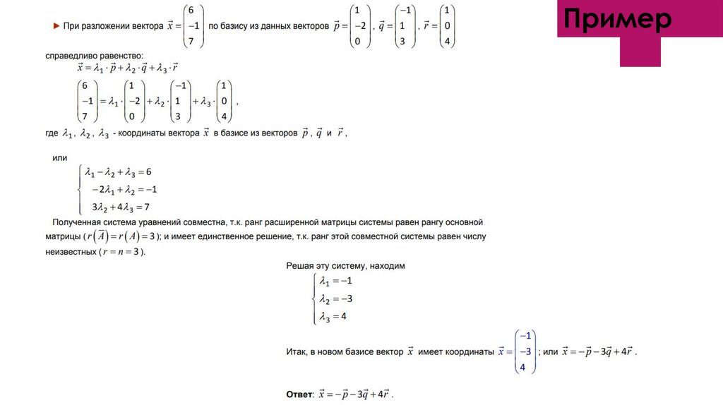 Пример32. РАЗЛОЖЕНИЕ ВЕКТОРА ПО БАЗИСУ