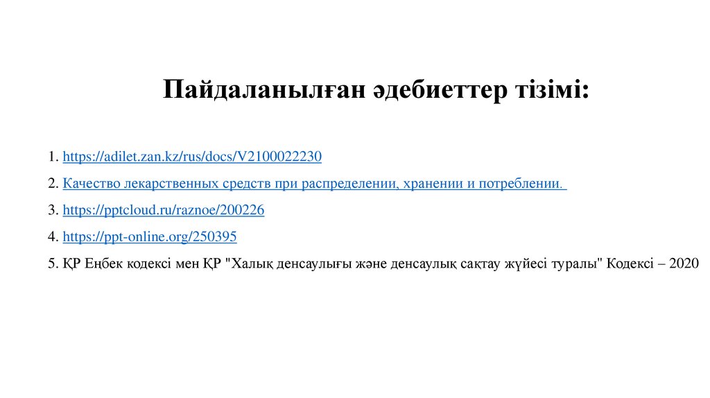 Пайдаланылған әдебиеттер тізімі:1. https://adilet.zan.kz/rus/docs/V2100022230