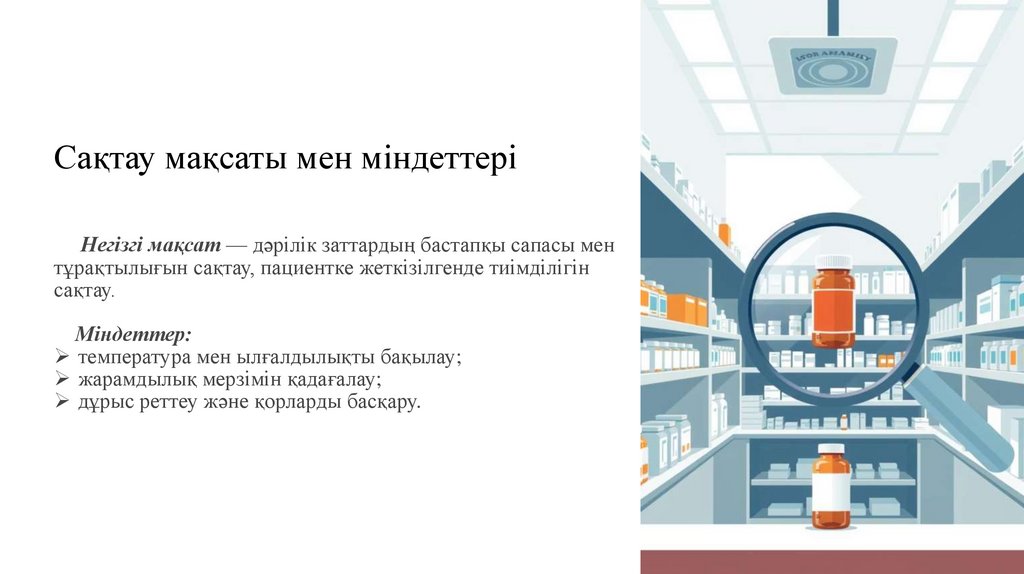 Сақтау мақсаты мен міндеттеріНегізгі мақсат — дәрілік заттардың бастапқы сапасы мен