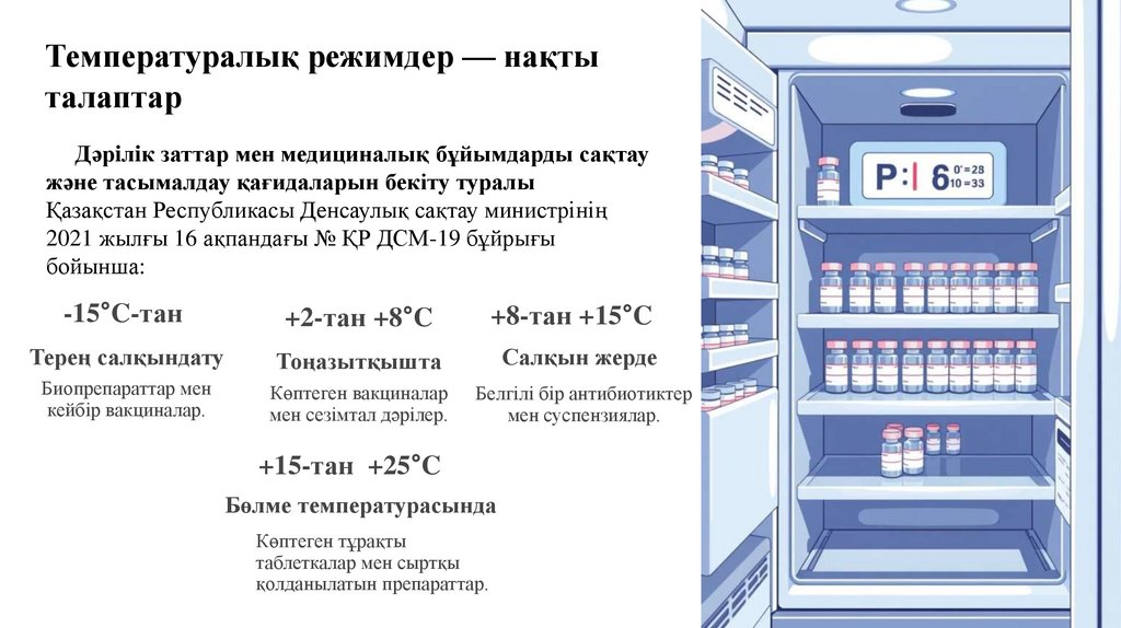 Pharmacy Practice) талаптары – дәрілік заттарды тиісті температуралық, ылғалдылық және жарық
