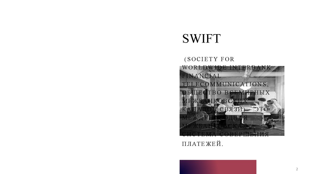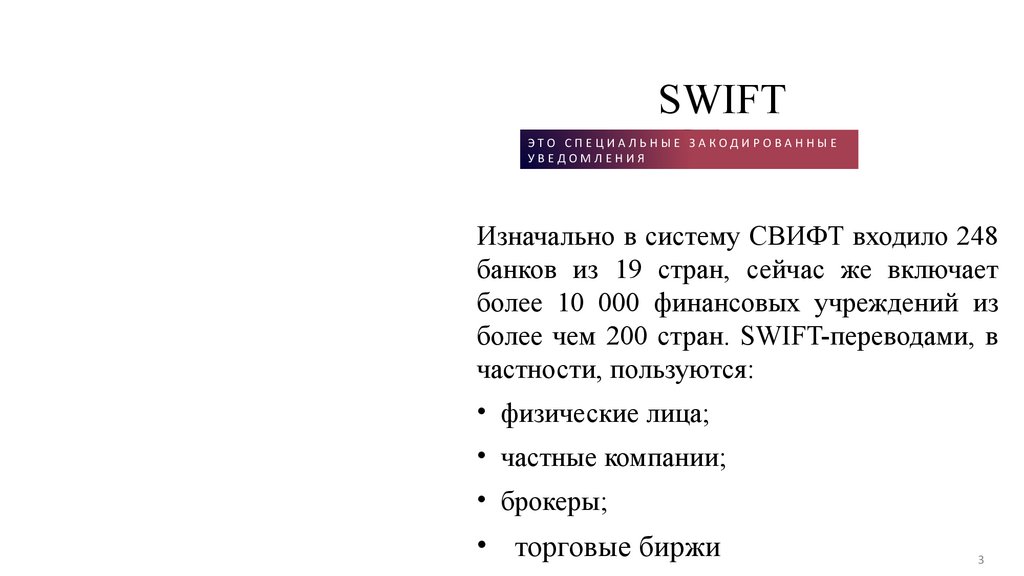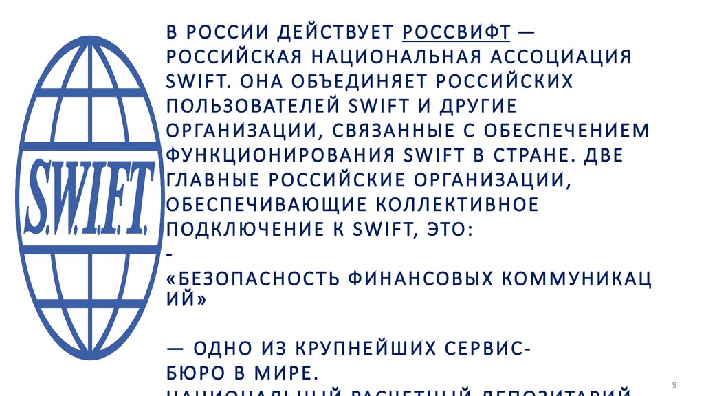 SW I F T. О Н А О БЪ Е Д И Н Я Е Т Р О С С И Й С К И Х