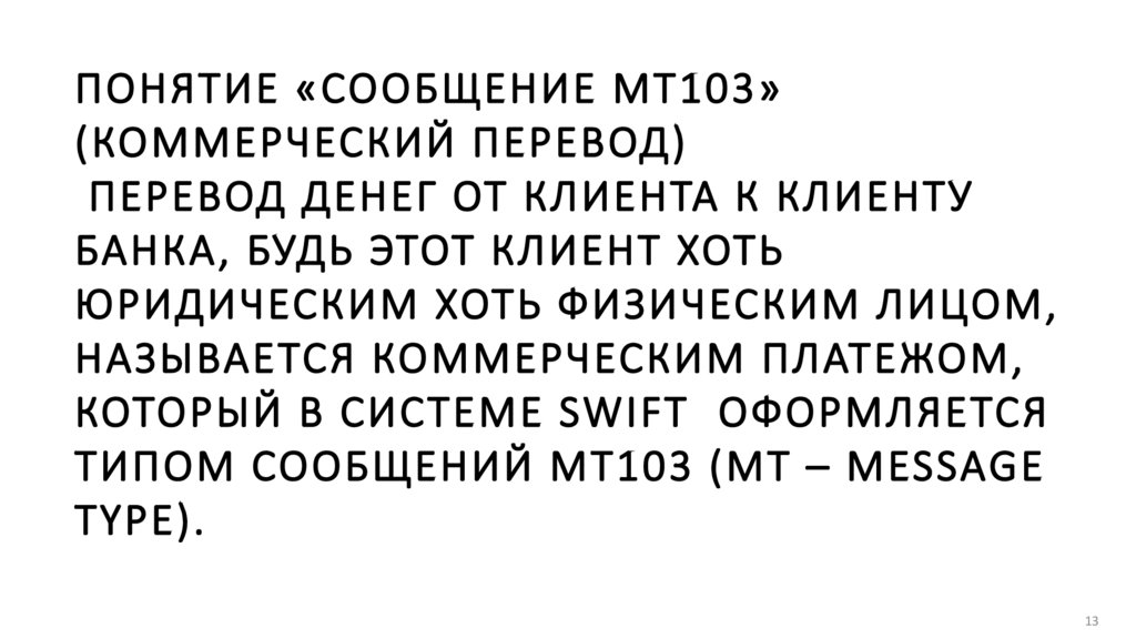 ПОНЯТИЕ «СООБЩЕНИЕ МТ103»(КОММЕРЧЕСКИЙ ПЕРЕВОД)